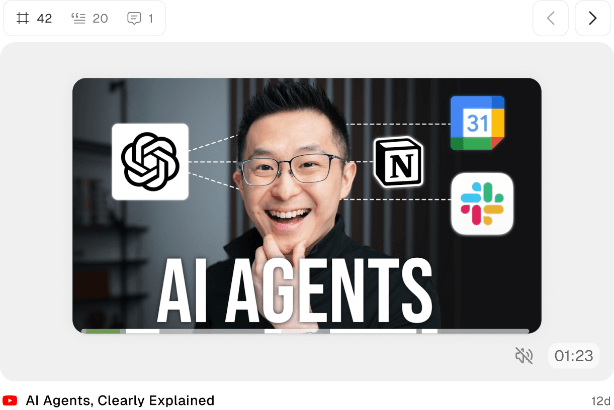 Videos, docs, YouTube videos, Reels, PDFs, course content. Eden understands down to the frame, so you never lose an idea.